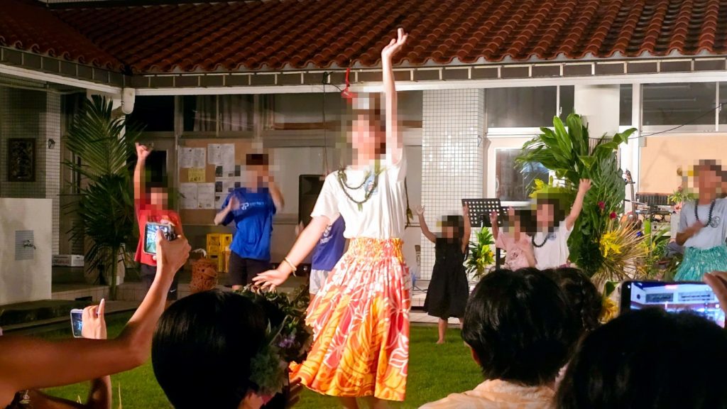 10月26日(日曜日)午後6時より、母島小中学校の中庭を会場にして、「フラ・オハナ2025」が開催されました。恒例の母島のフラダンスの祭典です。中学部の3年生は卒業後に母島を離れて高校に進学します。したがって、母島での最後のフラダンス発表会となります。10年間以上にわたってご指導して頂いたフラダンスの先生方へ感謝の気持ちを込めて、最後のフラダンスを披露しました。