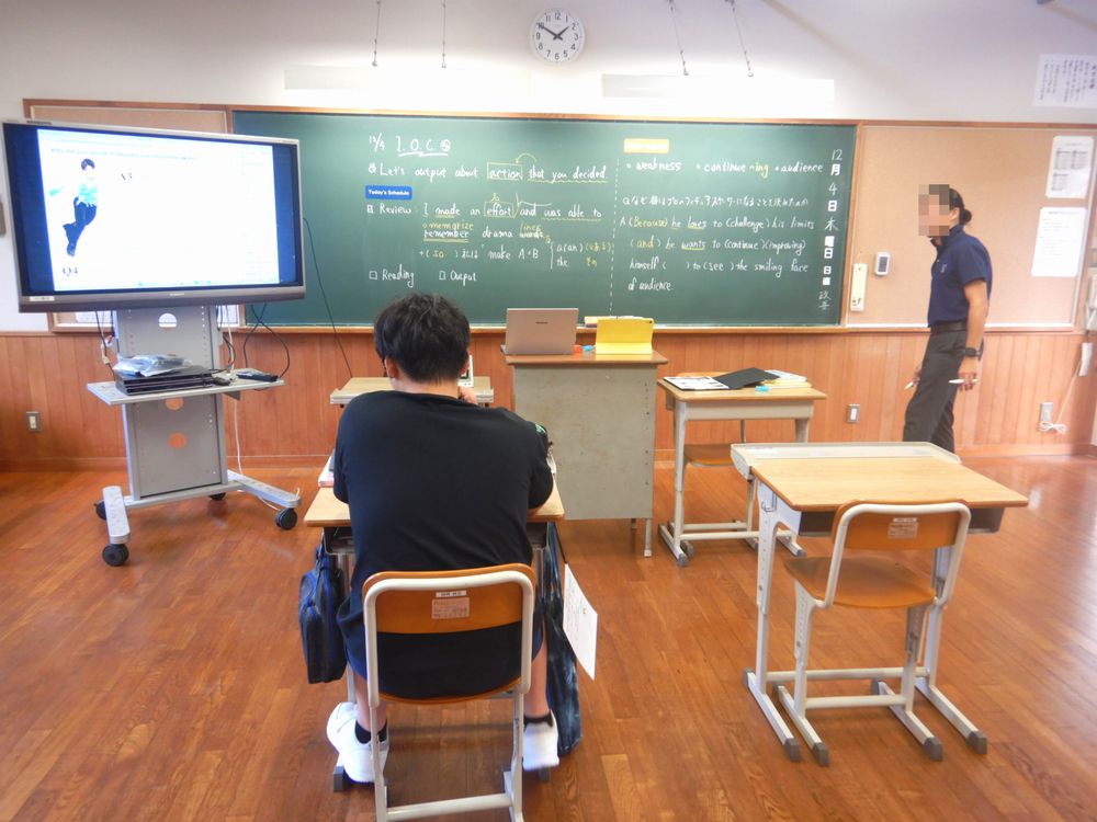 2年生の英語はテキスト本文の英文読解に取り組みました。題材は男子フィギアスケートの羽生結弦選手です。テキストを読解しながら「なぜ彼はプロのフィギアスケーターになることをきめたのか」を英語で表現しました。