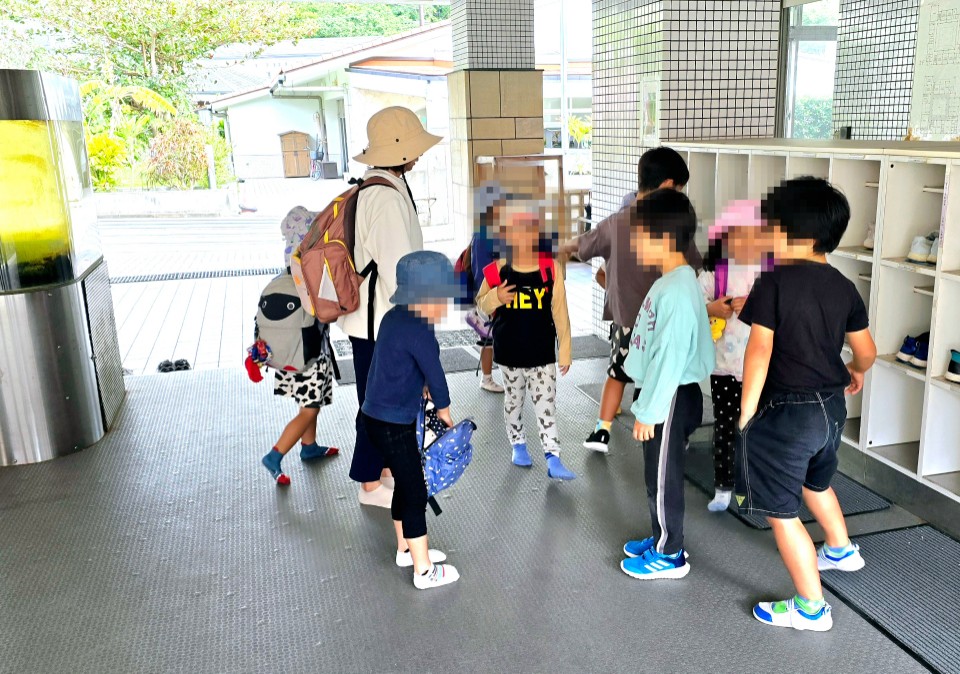 現1年生の3名が新1年生のお出迎えです。しっかりとお兄さんらしい振る舞いをして立派でした。下駄箱へ靴を入れるお手伝いを行いました。
