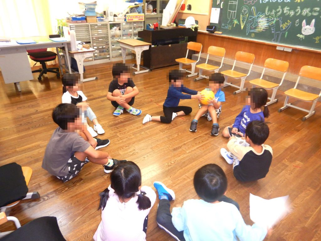 まずは自己紹介からです。年長さんの皆さんから自己紹介をしてもらいました。