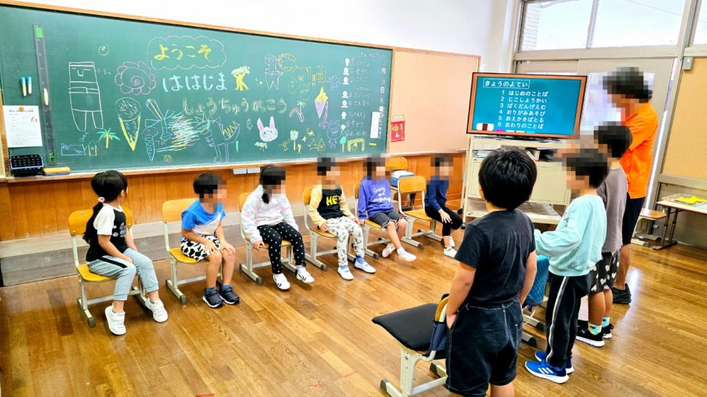 来年度(令和8年度)、新入学してくる新1年生(保育園年長さん)が母島小中学校に来校し、小学部(小学校)を体験しました。