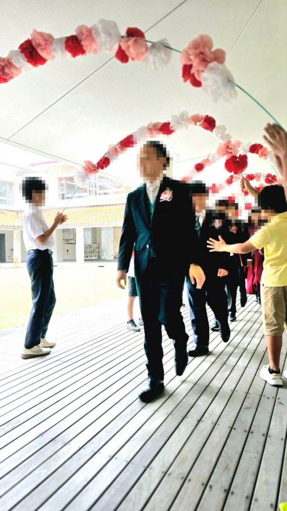 新着情報 「第51回 卒業式・修了式」を挙行しました【3月21日(土)】③ 2026/03/21 最後に、花道をつくってのお見送りです。在校生が花のアーチをつくり、修了生・卒業生を見送りました。 修了生(6年生)です。